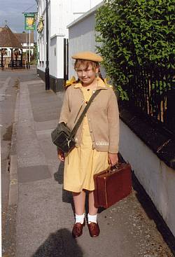 Keywords: 1940's, evacuee, child, girl, period, costume, hire, Goodwood revival, Pickering,