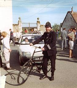 A policeman on duty with transport
